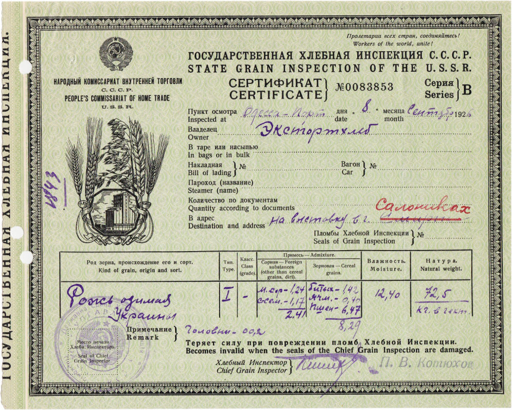 Нагляд у галіне забеспячэння якасці збожжа, мукі, круп, камбікармоў. Выдача сертыфікатаў якасці.