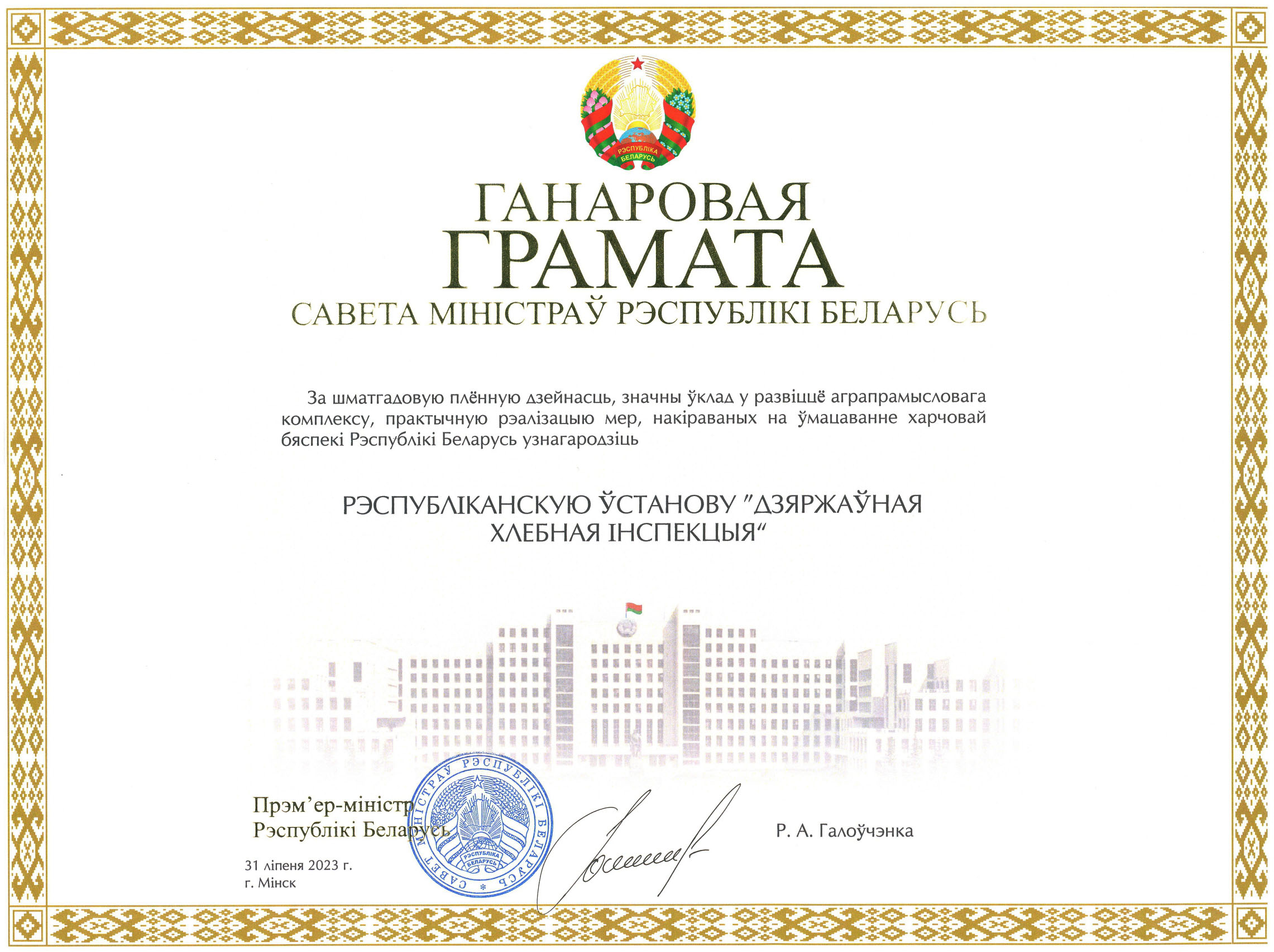 Рэспубліканская ўстанова "Дзяржаўная хлебная інспекцыя":